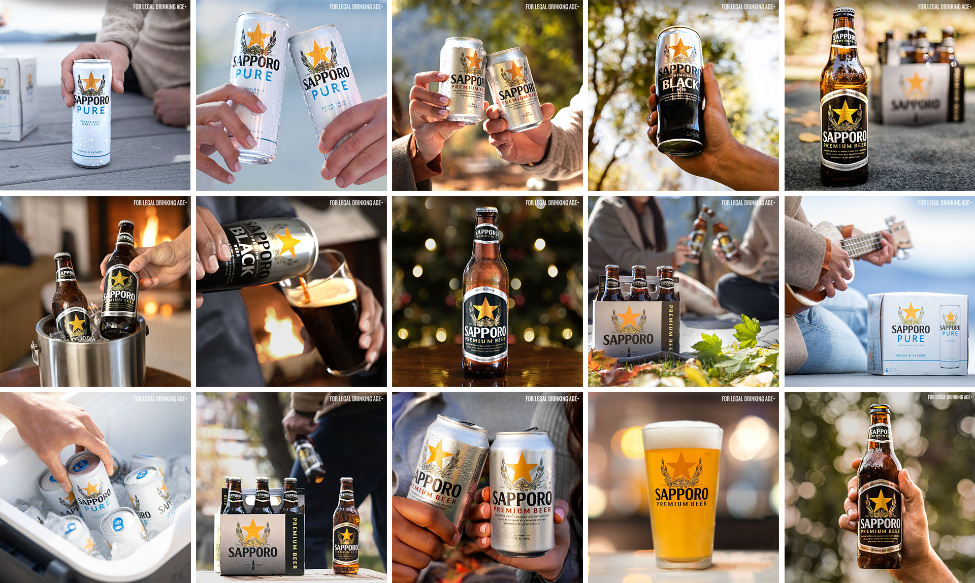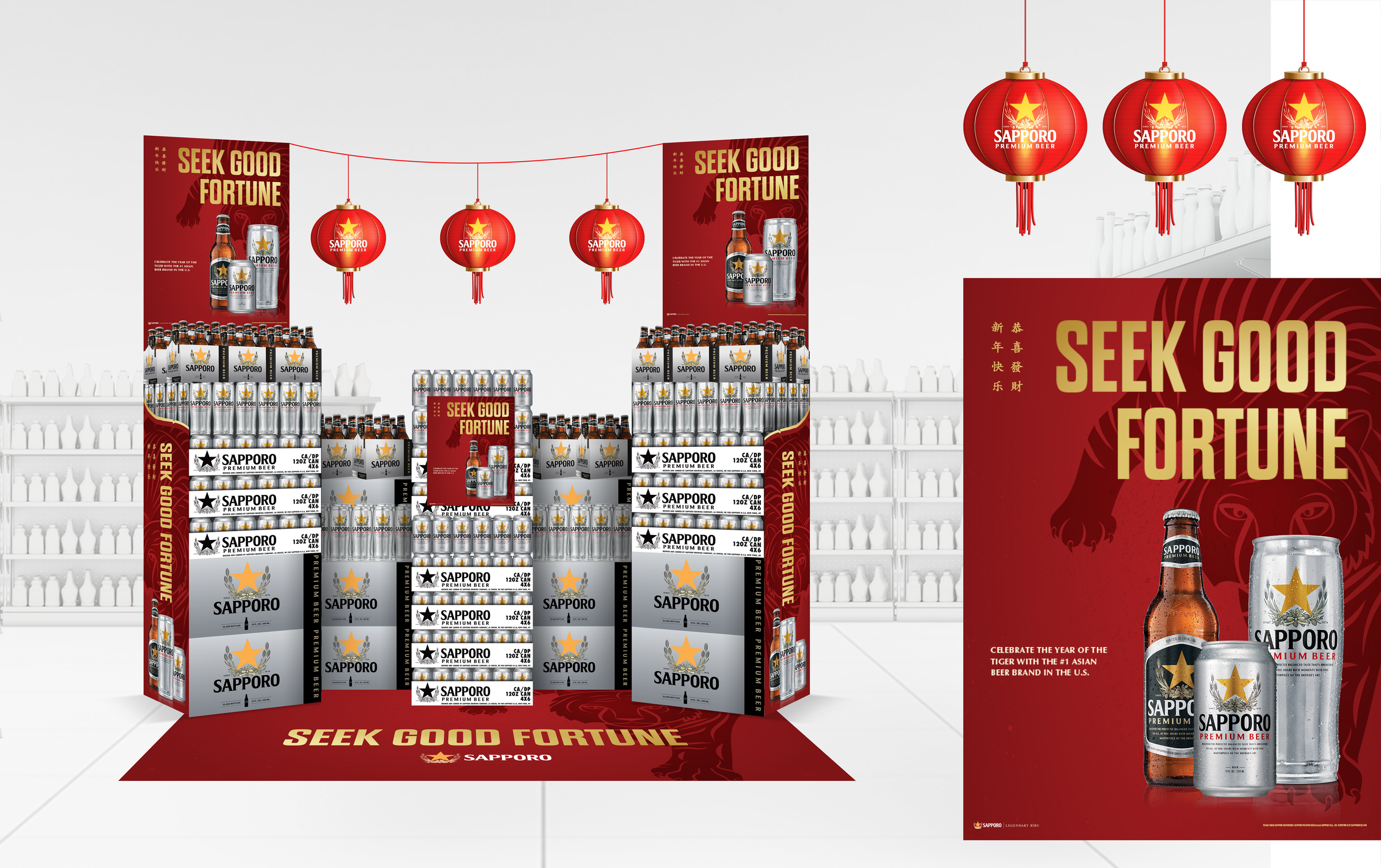 Art direction for Sapporo Beer that included a summer sweepstakes promotion, social media management, retail displays for various quarterly programs.